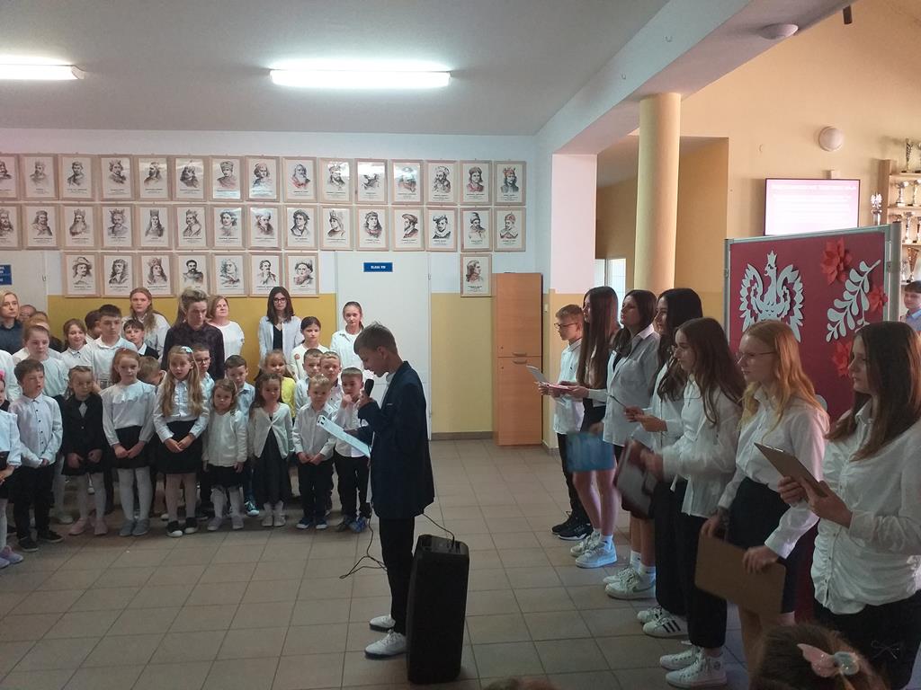 30.04.2025 odbyła się uroczysta akademia z okazji rocznicy uchwalenia Konstytucji 3 Maja. Uczniowie klasy 7 upamiętnili uchwalenie przez Sejm Czteroletni tej bardzo ważnej dla naszego kraju Ustawy Rządowej, która zreformowała ustrój I Rzeczypospolitej.