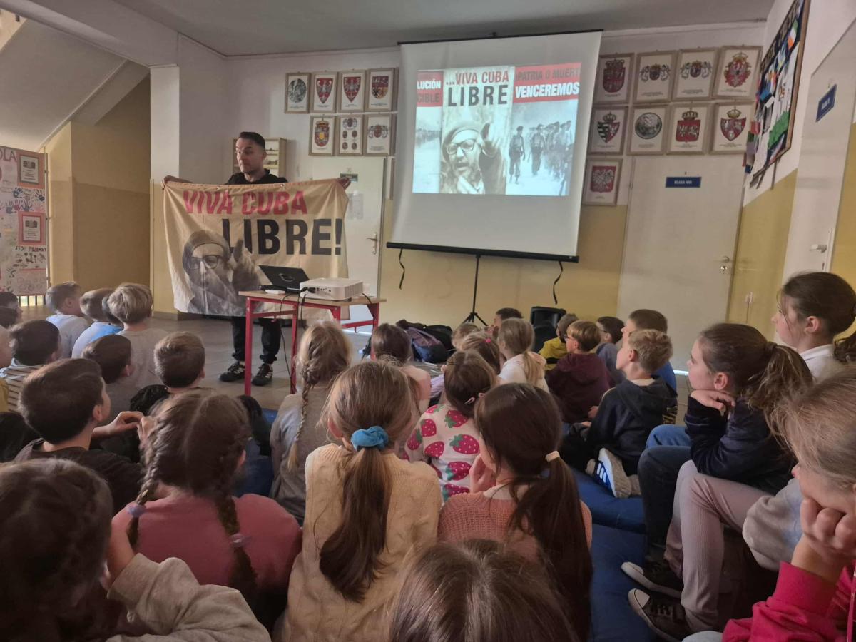 Drukuj Powrót do poprzedniej strony Spotkanie z podróżnikiem 13.10.2025 15:17 Treść Jak co roku naszą szkołę odwiedził podróżnik z grupy "Trzask". Tym razem przybliżył naszym uczniom życie i zwyczaje mieszkańców południowoamerykańskiej Kuby.