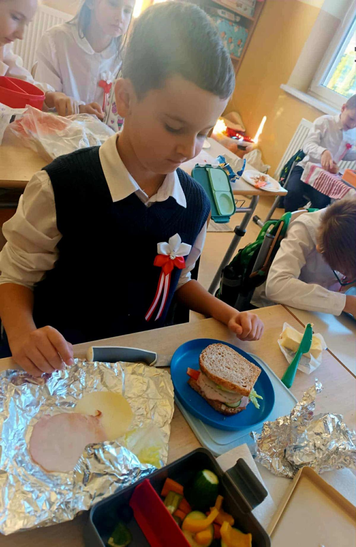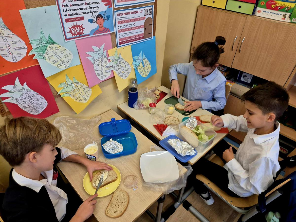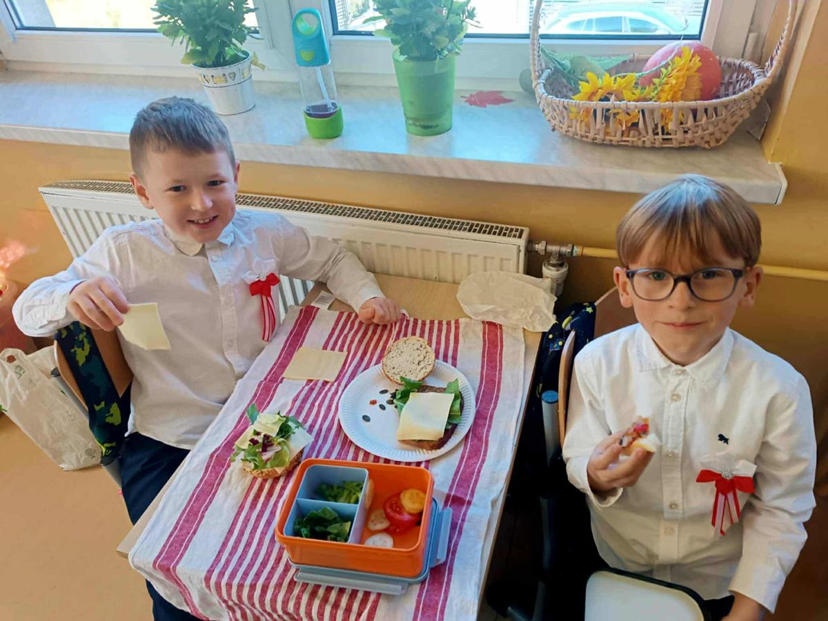 Wspólne i zdrowe śniadanie smakowało wyśmienicie, dało energię na cały dzień oraz dużo radości. Przygotowanie zdrowego śniadania, było podsumowaniem spotkania z dietetykiem Panią Anną Kusyk.