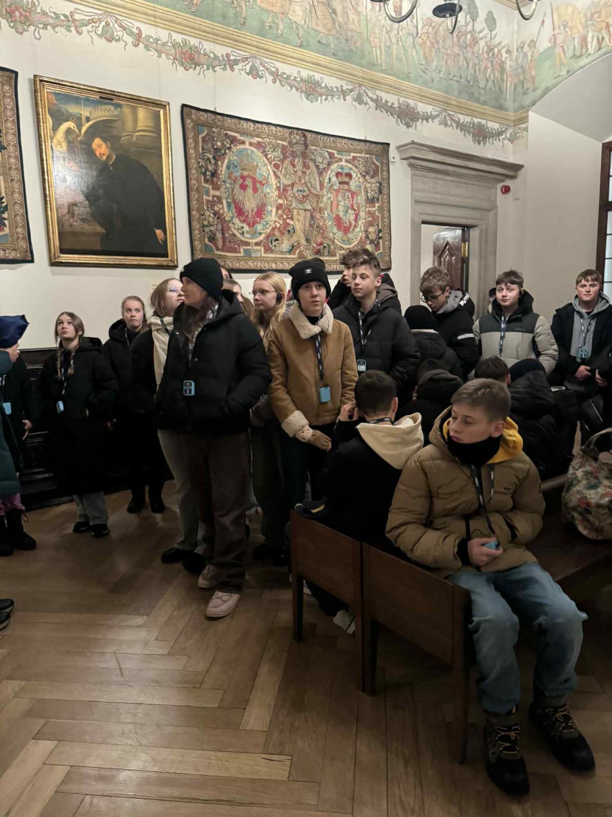 Pierwszym etapem było zwiedzanie Zamku Królewskiego na Wawelu, gdzie uczniowie poznali historyczne dzieje tego obiektu. Następnie uczestnicy wycieczki odbyli spacer po płycie Rynku Głównego oraz zwiedzili Kościół Mariacki. W drodze powrotnej wszyscy uczniowie zjedli ciepły posiłek.