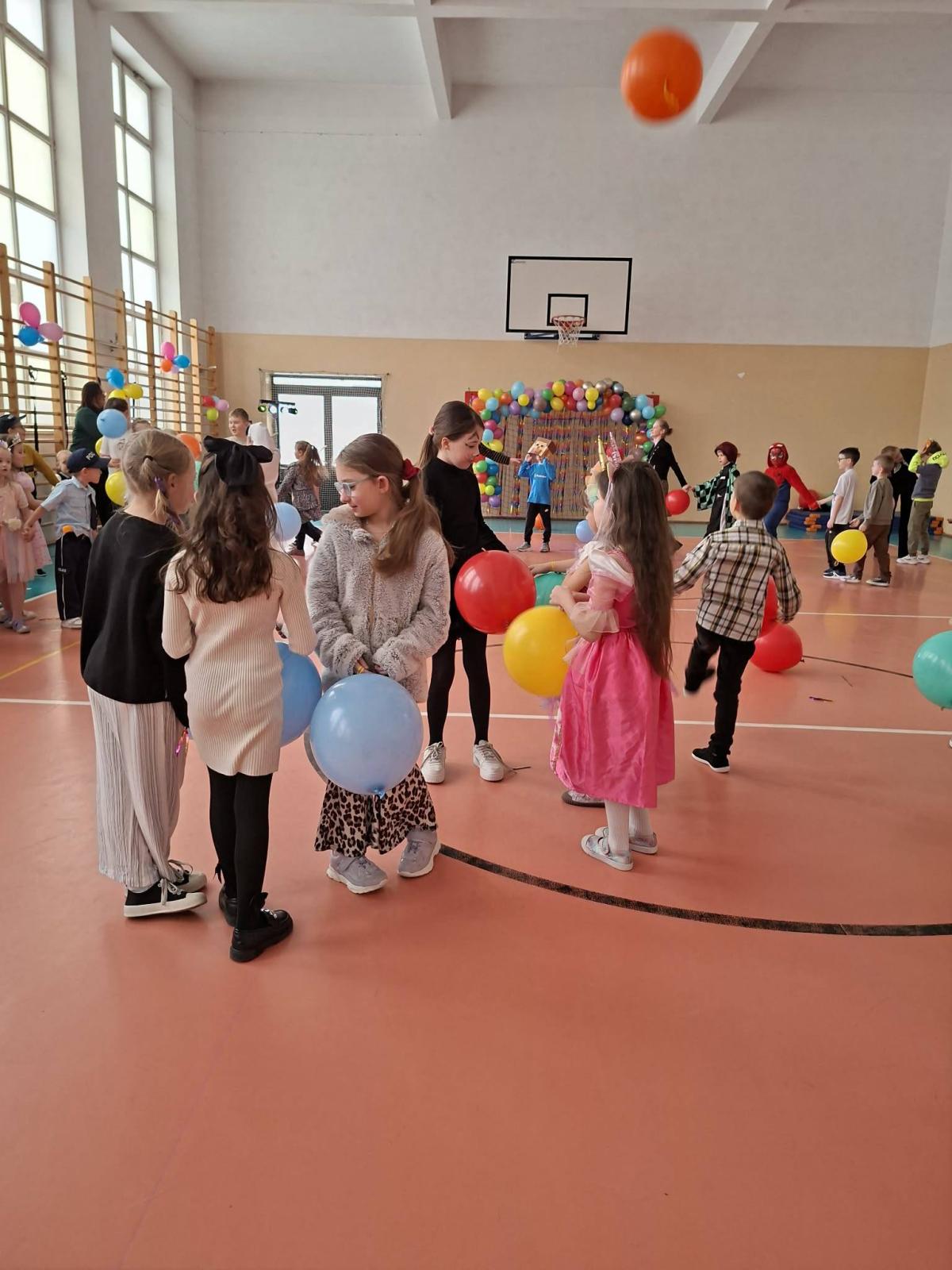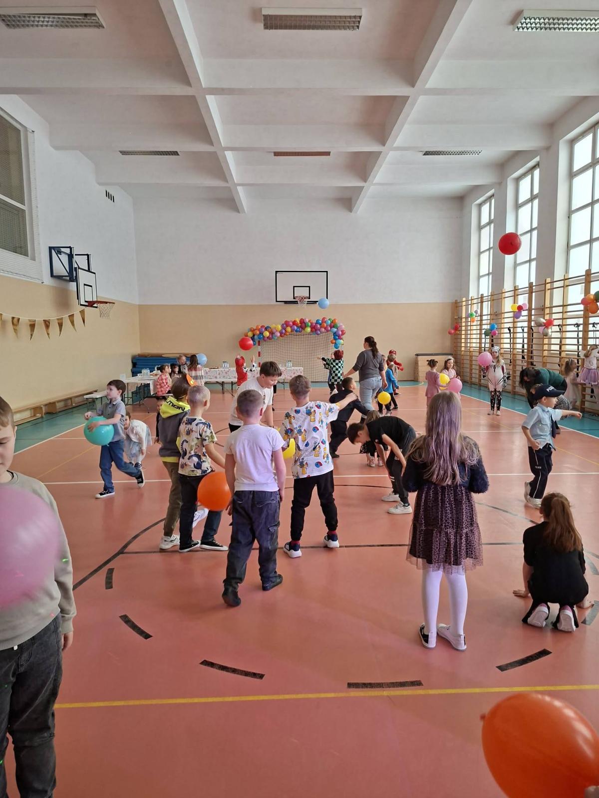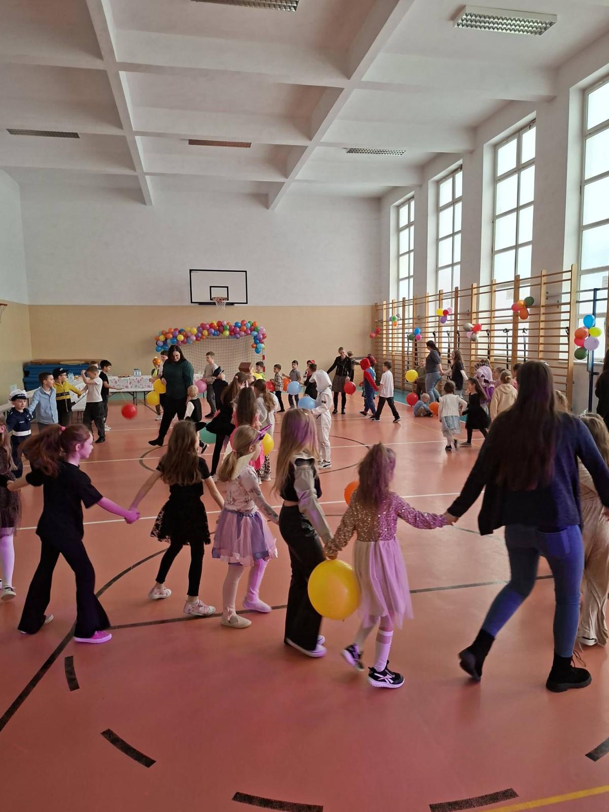 Był to dzień niecierpliwie wyczekiwany. Zjawiskowy wystrój sali wprowadził wszystkich w wesoły nastrój i zachęcił do wspólnej zabawy. Jak zwykle stroje naszych uczniów były różnorodne - od postaci bajkowych po superbohaterów, a także postacie fantastyczne. Tego dnia wszystkim towarzyszyło wiele emocji i wrażeń. Dekoracja zachęcała do wspólnej, wesołej zabawy. W czasie przerwy dzieci miały czas na poczęstunek przygotowany przez Radę Rodziców. Bal był również okazją do wykonania pamiątkowych zdjęć w karnawałowych przebraniach. Czas zabawy szybko minął, ale wszyscy tanecznym, wesołym krokiem ruszyliśmy w stronę swoich domów. Serdecznie dziękujemy naszej Radzie Rodziców, która jak zwykle w 100% podjęła się organizacji kolejnej imprezy w naszej szkole.