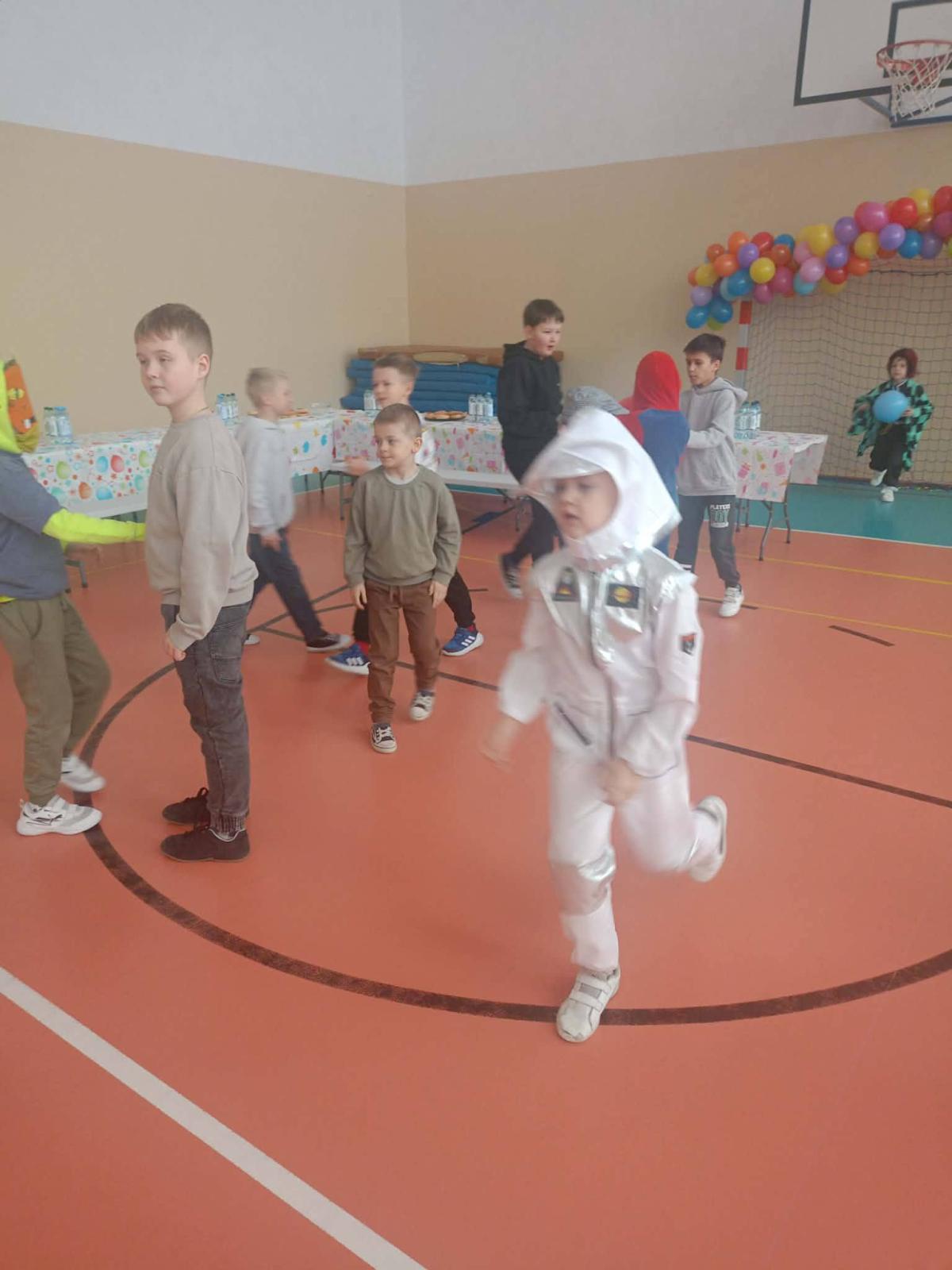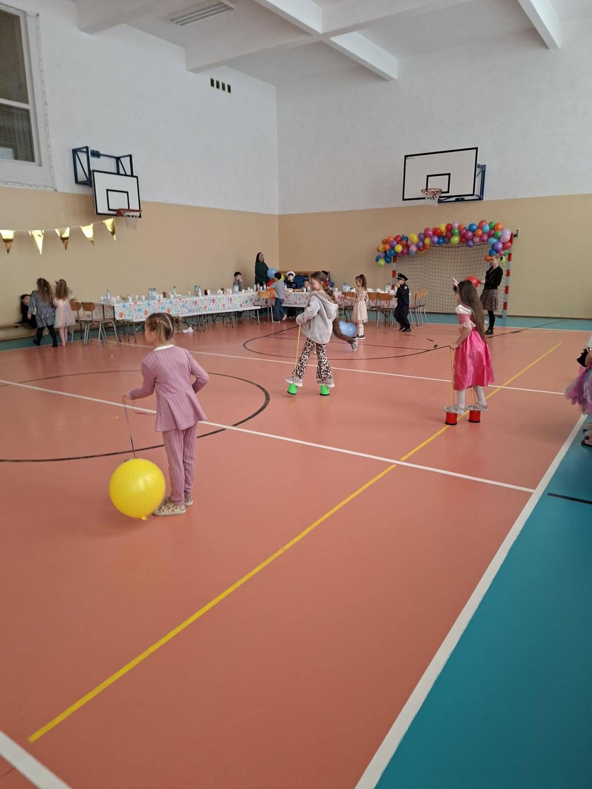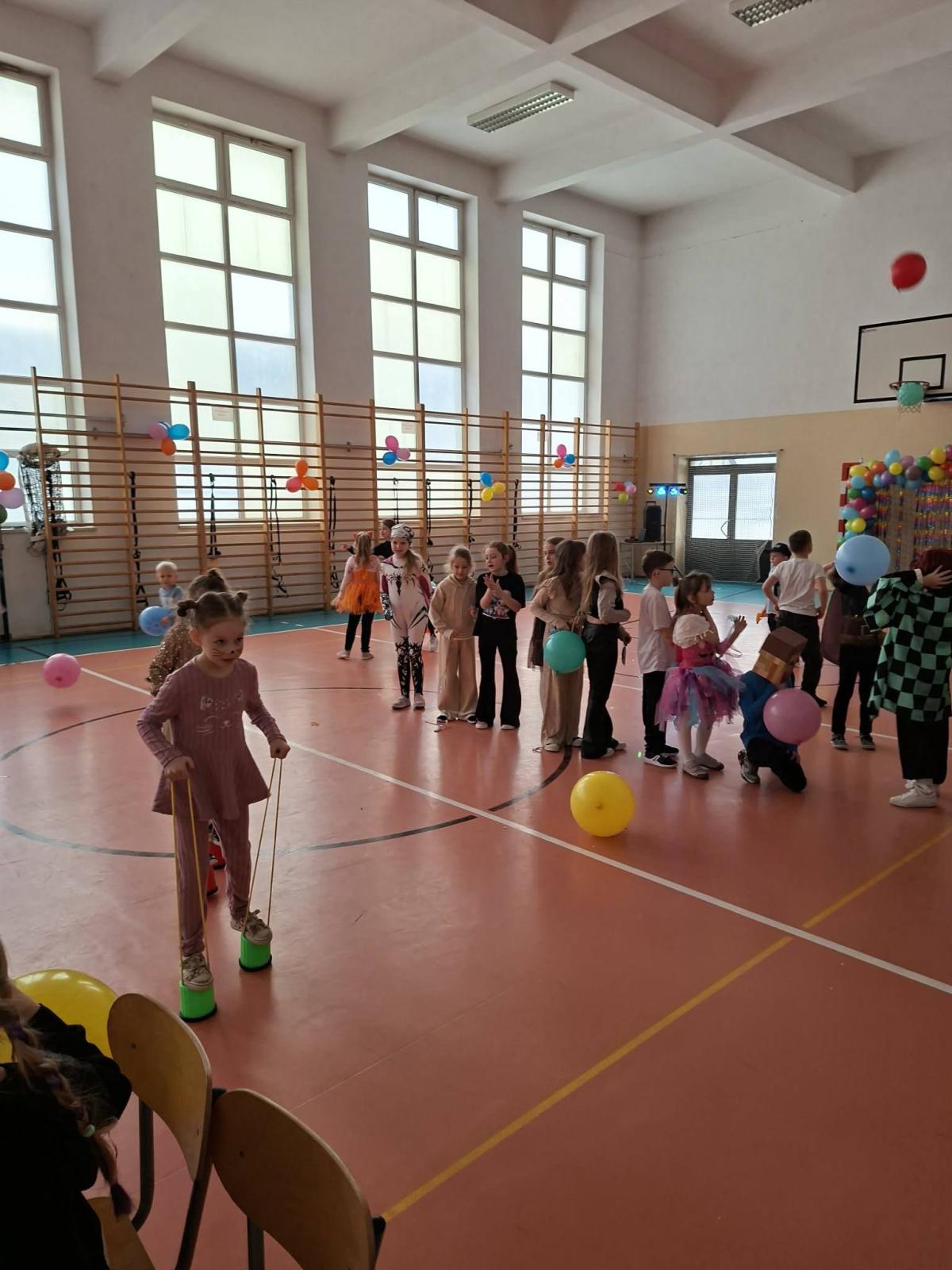 Był to dzień niecierpliwie wyczekiwany. Zjawiskowy wystrój sali wprowadził wszystkich w wesoły nastrój i zachęcił do wspólnej zabawy. Jak zwykle stroje naszych uczniów były różnorodne - od postaci bajkowych po superbohaterów, a także postacie fantastyczne. Tego dnia wszystkim towarzyszyło wiele emocji i wrażeń. Dekoracja zachęcała do wspólnej, wesołej zabawy. W czasie przerwy dzieci miały czas na poczęstunek przygotowany przez Radę Rodziców. Bal był również okazją do wykonania pamiątkowych zdjęć w karnawałowych przebraniach. Czas zabawy szybko minął, ale wszyscy tanecznym, wesołym krokiem ruszyliśmy w stronę swoich domów. Serdecznie dziękujemy naszej Radzie Rodziców, która jak zwykle w 100% podjęła się organizacji kolejnej imprezy w naszej szkole.