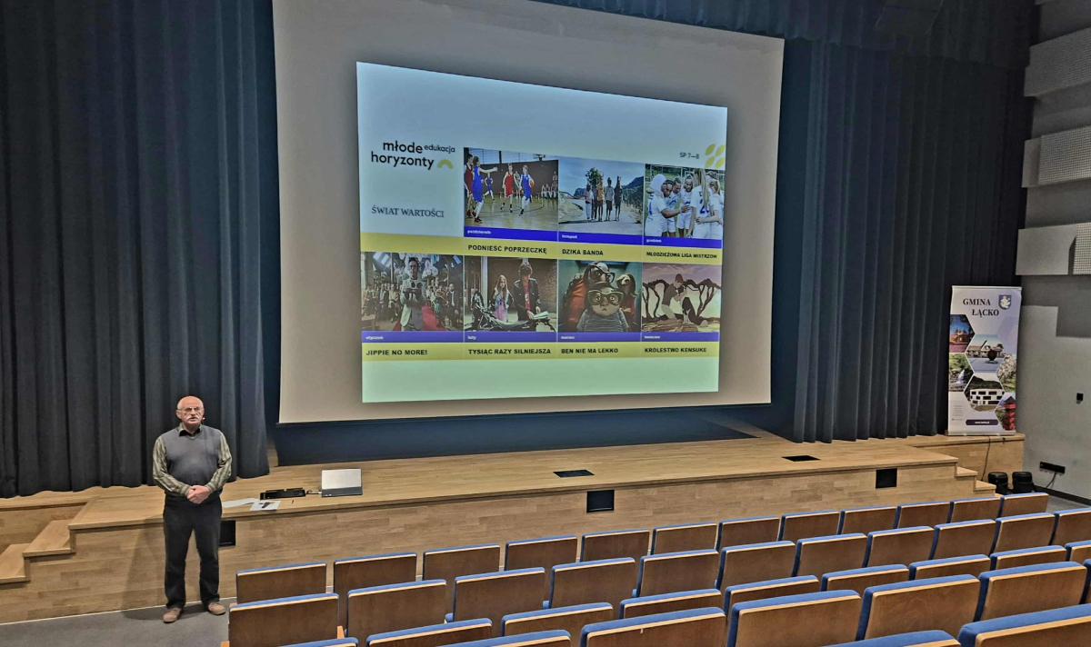 Wyjazd do Centrum Kultury i Edukacji Muzycznej w Łącku, zorganizowano w ramach Ogólnopolskiego Projektu Edukacji Filmowej dla Przedszkoli i Szkół „Młode Horyzonty”. Młode horyzonty to kompleksowy, program edukacji kulturalnej dla szkół i przedszkoli, zgodny z podstawą programową i polityką oświatową. Uczniowie wszystkich klas co miesiąc będą wyjeżdżać na inny seans. Każde spotkanie wzbogacone będzie o prelekcję oraz zestaw materiałów dydaktycznych, które pomogą lepiej zrozumieć treści prezentowane na ekranie.