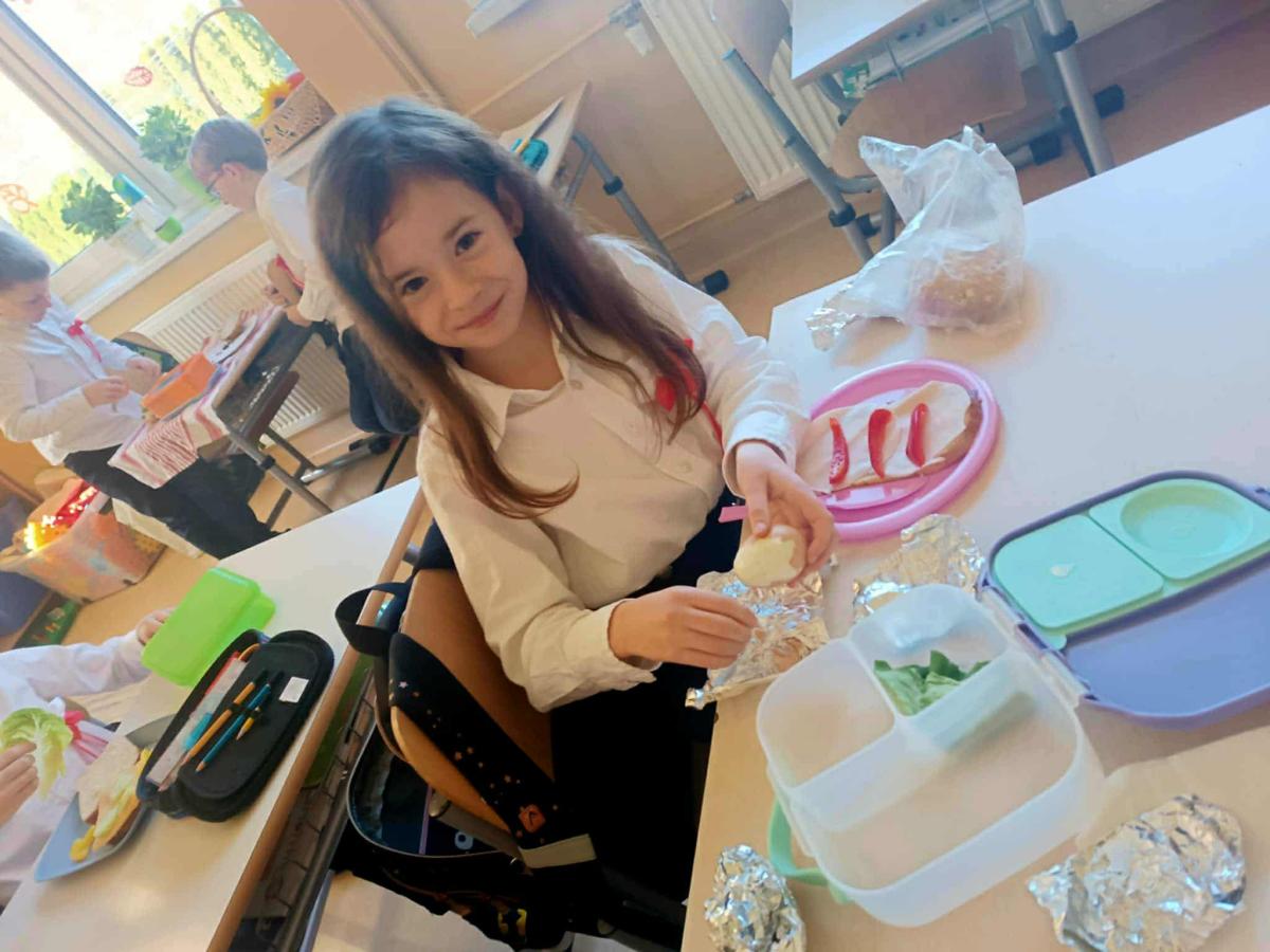 Wspólne i zdrowe śniadanie smakowało wyśmienicie, dało energię na cały dzień oraz dużo radości. Przygotowanie zdrowego śniadania, było podsumowaniem spotkania z dietetykiem Panią Anną Kusyk.