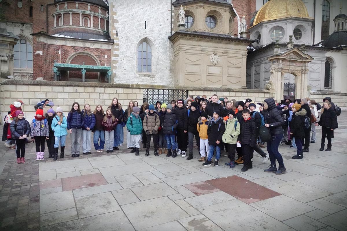 Pierwszym etapem było zwiedzanie Zamku Królewskiego na Wawelu, gdzie uczniowie poznali historyczne dzieje tego obiektu. Następnie uczestnicy wycieczki odbyli spacer po płycie Rynku Głównego oraz zwiedzili Kościół Mariacki. W drodze powrotnej wszyscy uczniowie zjedli ciepły posiłek.