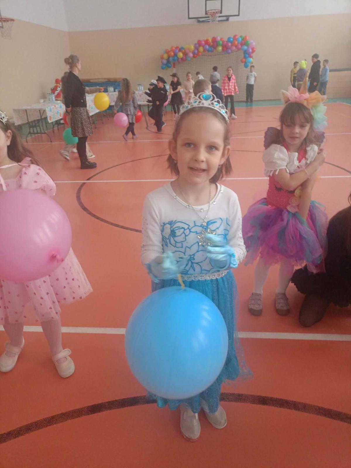 Był to dzień niecierpliwie wyczekiwany. Zjawiskowy wystrój sali wprowadził wszystkich w wesoły nastrój i zachęcił do wspólnej zabawy. Jak zwykle stroje naszych uczniów były różnorodne - od postaci bajkowych po superbohaterów, a także postacie fantastyczne. Tego dnia wszystkim towarzyszyło wiele emocji i wrażeń. Dekoracja zachęcała do wspólnej, wesołej zabawy. W czasie przerwy dzieci miały czas na poczęstunek przygotowany przez Radę Rodziców. Bal był również okazją do wykonania pamiątkowych zdjęć w karnawałowych przebraniach. Czas zabawy szybko minął, ale wszyscy tanecznym, wesołym krokiem ruszyliśmy w stronę swoich domów. Serdecznie dziękujemy naszej Radzie Rodziców, która jak zwykle w 100% podjęła się organizacji kolejnej imprezy w naszej szkole.